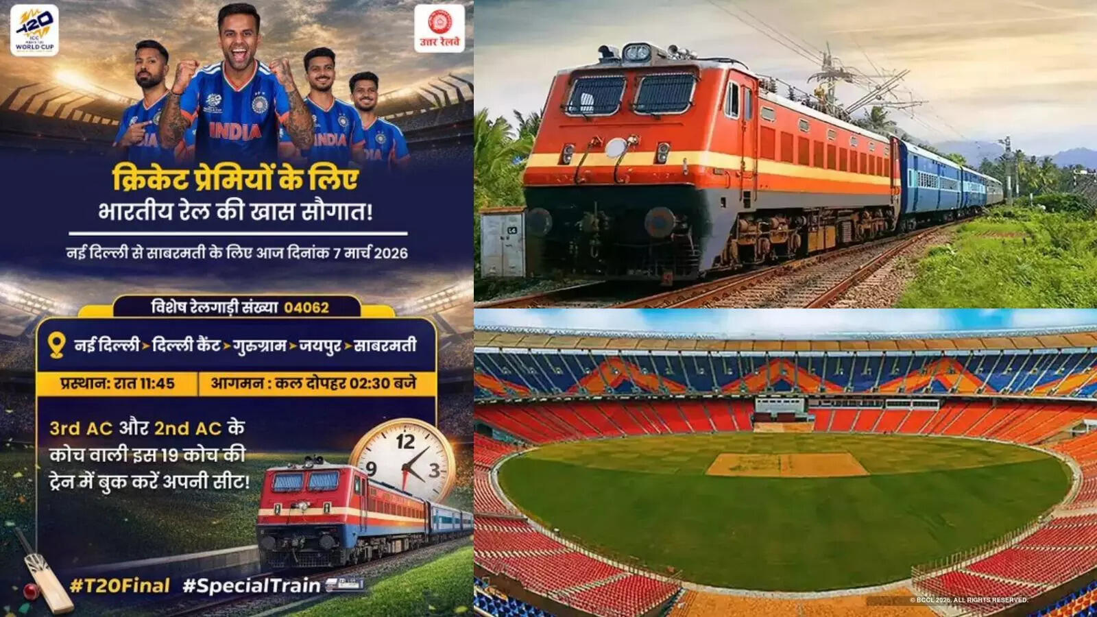 The special train will go from New Delhi to Sabarmati. It will leave at 11:45 PM on March 7, 2026. The train has 19 coaches. These include Third AC and Second AC coaches. This offers a comfortable journey for fans.
